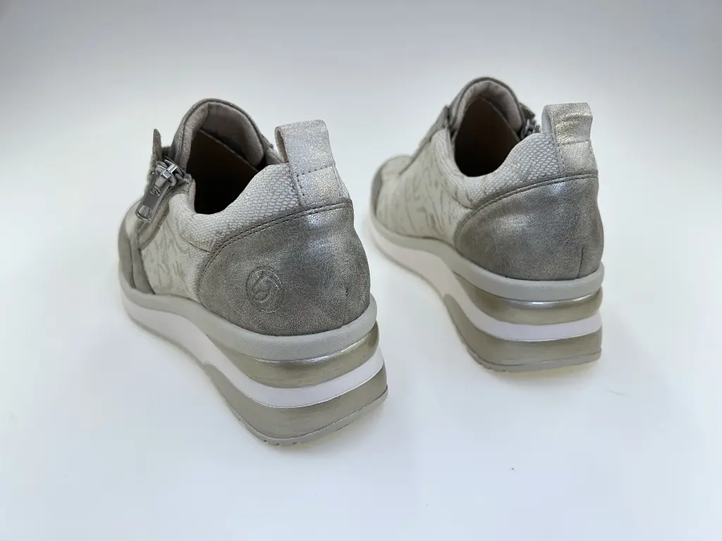 Hľadáte obuv, ktorá oživí váš jarný šatník a zároveň poskytne vašim nohám kráľovské pohodlie? Dámske poltopánky Remonte D2401-61 v sofistikovanom béžovom odtieni s jemným metalickým leskom sú stvorené pre dynamické ženy, ktoré nechcú robiť kompromisy medzi módou a komfortom. Ako prémiová rada značky Rieker, tento model prináša nadštandardné spracovanie a pokročilé technológie pre zdravú chôdzu. Prečo si vybrať práve model Remonte D2401-61? Prémiová kombinácia materiálov: Zvršok z kvalitnej kože a syntetiky s jemným vzorom a leskom dodáva topánkam luxusný vzhľad, ktorý sa hodí k džínsom aj k elegantnejším nohaviciam. Technológia Remonte Soft: Unikátna stielka, ktorá tlmí nárazy pri každom došľape. Je navrhnutá tak, aby rovnomerne rozkladala tlak na chodidlo, čím chráni vaše kĺby a chrbticu. Vymeniteľná stielka: Praktické riešenie pre dámy, ktoré potrebujú používať vlastné ortopedické vložky. Pôvodnú vložku môžete jednoducho vybrať a nahradiť. Praktický bočný zips: Okrem klasického šnurovania, ktoré slúži na presné prispôsobenie šírke nohy, disponuje model aj funkčným bočným zipsom. Ten zaručuje bleskové a pohodlné obúvanie bez nutnosti opätovného viazania šnúrok. Ľahká a ohybná podrážka: Flexibilná podošva sa prispôsobuje prirodzenému pohybu nohy, čo zaručuje stabilitu a pocit ľahkosti aj po celodennom nosení v meste. Poltopánky Remonte D2401-61 sú dokonalou investíciou do vášho štýlu a pohody. Ich univerzálny béžový odtieň opticky predlžuje nohy a hravo ho skombinujete s akoukoľvek farbou vášho outfitu.Vlastnosti