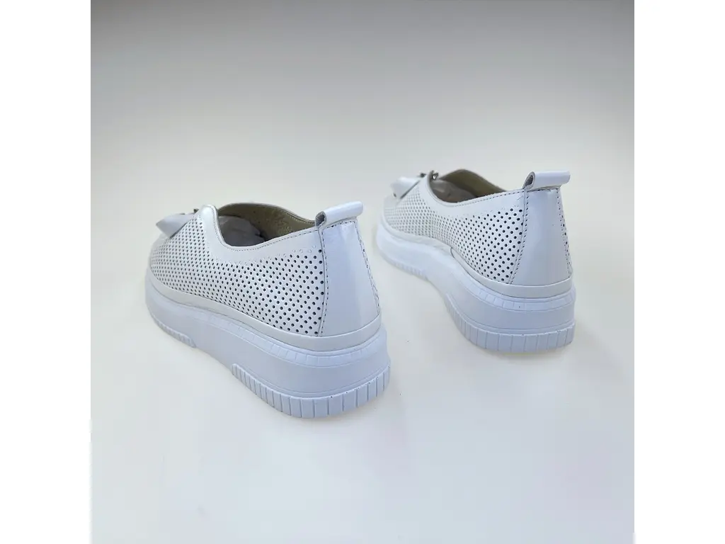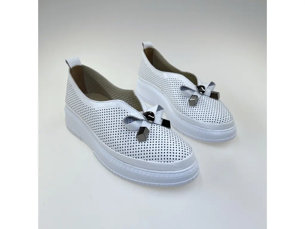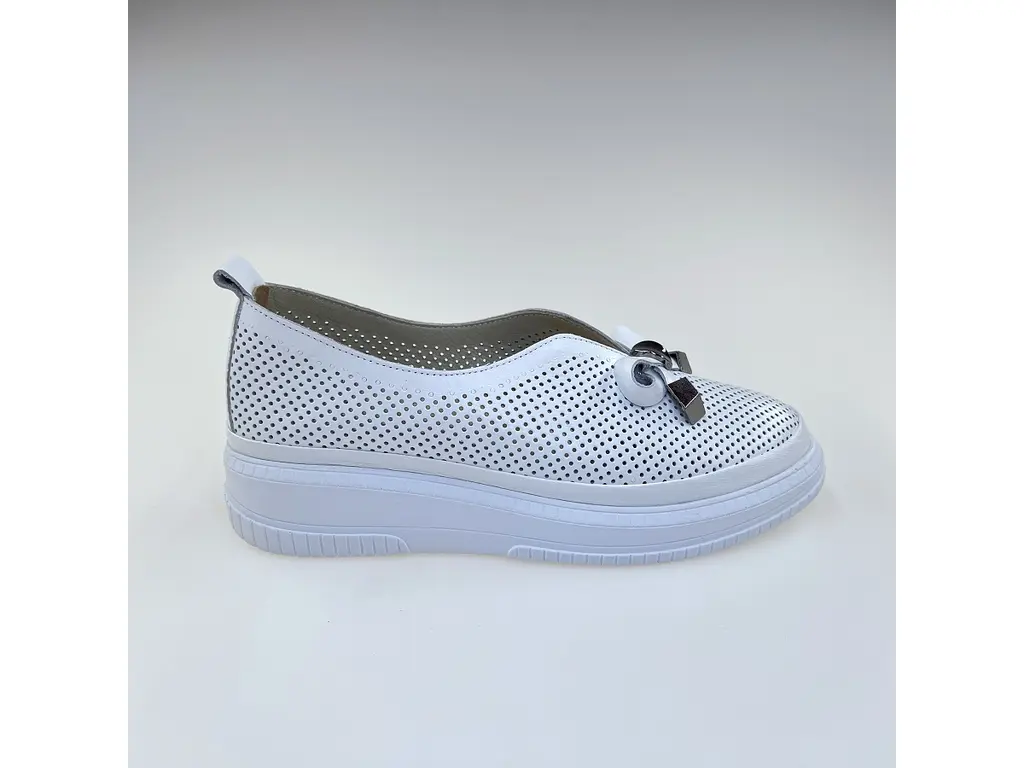 Vneste do svojho šatníka taliansky šarm a pocit nekonečného pohodlia. Dámske kožené baleríny Bombonella ASPG352618T046-10 v žiarivo bielej farbe sú dokonalou ukážkou toho, ako sa spája tradičné remeslo s modernými trendmi. Tento model je navrhnutý pre ženy, ktoré hľadajú elegantnú obuv s unikátnym rukopisom, ideálnu na slávnostné príležitosti aj bežný pracovný deň. Hlavné prednosti tohto modelu: Prémiová prírodná koža: Použitie výberovej kože na zvršku aj v interiéri topánky zaručuje, že balerínky sú mimoriadne mäkké, poddajné a dokonale priedušné. Unikátny taliansky dizajn: Značka Bombonella je známa svojou pozornosťou k detailom. Model ASPG352618T046 vyniká precíznym spracovaním, ktoré mu dodáva punc luxusu a exkluzivity. Anatomicky tvarovaná stielka: Kožená vložka vo vnútri topánky je navrhnutá tak, aby rovnomerne rozkladala tlak na chodidlo, čím predchádza únave aj pri celodennom nosení. Flexibilná podrážka: Tenká, ale odolná podošva umožňuje prirodzený pohyb nohy a dodáva chôdzi potrebnú ľahkosť a gráciu. Svieža biela elegancia: Biela farba opticky osvieži akýkoľvek outfit. Tieto balerínky sú skvelou voľbou k letným šatám, k svadobným kostýmom (aj ako náhradná obuv pre nevestu) alebo k elegantným bielym nohaviciam.Vlastnosti