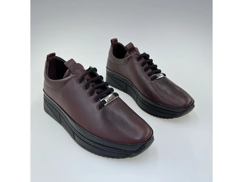 Dámske bordové kožené pohodlné poltopánky shi051.107-36