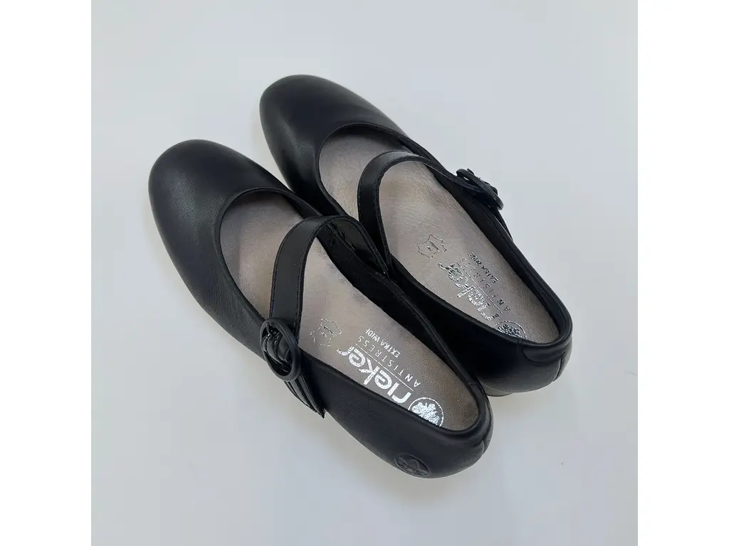 Doprajte si pocit sebavedomia a pohodlia, po ktorom ste vždy túžili. Dámske lodičky Rieker 43455-00 v klasickej čiernej farbe sú dôkazom, že elegantná obuv nemusí byť spojená s bolesťou nôh. Tento model je navrhnutý špeciálne pre dámy, ktoré hľadajú širší strih (šírka H) a potrebujú stabilitu pri každom kroku, či už v práci, alebo na slávnostnej udalosti. Prečo si vybrať model Rieker 43455-00? Šírka H (Comfort): Špeciálne kopyto poskytuje chodidlu extra priestor v oblasti prstov a priehlavku. Ideálna voľba pre širšie chodidlá alebo pre dámy, ktorým bežné lodičky bývajú tesné. Technológia Antistress: Unikátna podošva Rieker je ľahká a flexibilná, vďaka čomu tlmí nárazy pri chôdzi a šetrí vaše kĺby aj počas celodenného nosenia. Stabilný a bezpečný podpätok: Stredne vysoký blokový podpätok zaisťuje perfektnú stabilitu a prirodzené držanie tela bez nadmernej únavy nôh. Praktické a štýlové zapínanie: Elegantný remienok cez priehlavok so suchým zipsom umožňuje nielen ľahké obúvanie, ale aj presné prispôsobenie topánky vašej nohe, aby sa nevyzúvala. Nadčasový dizajn: Kvalitný zvršok s jemným prešívaním a dekoratívnymi prvkami dodáva lodičkám sofistikovaný vzhľad, ktorý hravo zladíte s kostýmom, šatami aj sukňou. Lodičky Rieker 43455-00 sú synonymom pre "pohodlnú eleganciu". Sú verným spoločníkom pre každú ženu, ktorá chce vyzerať upravene a pritom sa cítiť komfortne od rána až do večera.Vlastnosti