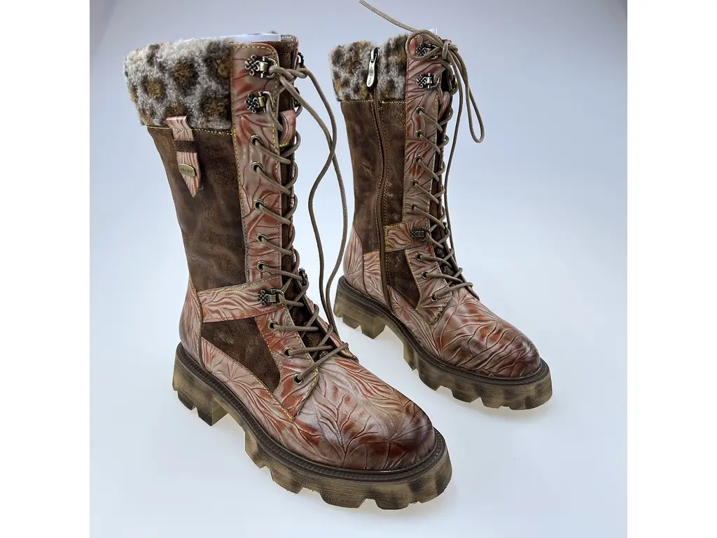 Dámske hnedé pohodlné štýlové čižmy Kouleo 2