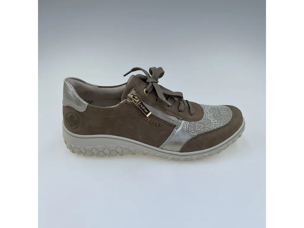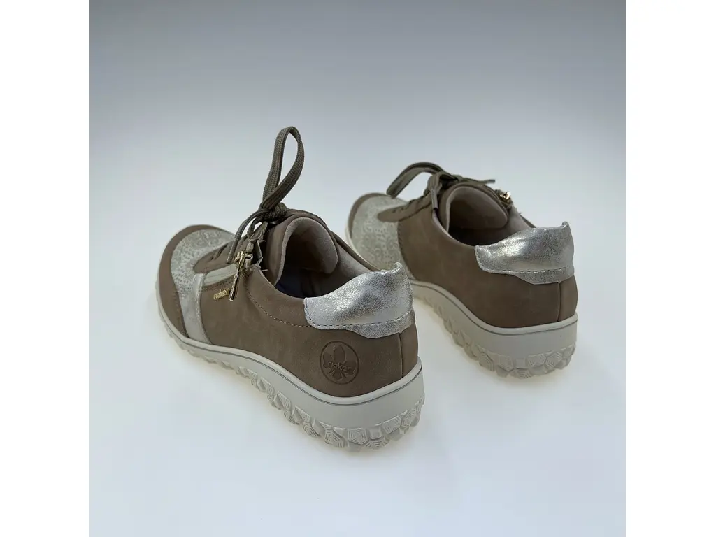 Rieker 59502-62: Štýlový komfort, ktorý si vaše nohy zamilujú Hľadáte obuv, ktorá spája moderný vzhľad s povestným pohodlím značky Rieker? Dámske poltopánky Rieker (vzor 59502-62) sú ideálnou voľbou pre aktívne ženy, ktoré potrebujú spoľahlivého spoločníka na celodenné nosenie. Tento model vyniká nielen svojím béžovým prevedením s jemnými detailmi, ale predovšetkým konštrukciou, ktorá rozmaznáva vaše chodidlá pri každom kroku. Prečo vsadiť na model Rieker 59502-62? Technológia Antistress: Unikátna podošva Rieker je ľahká, flexibilná a tlmí nárazy pri každom došľape. Chráni tak nielen vaše nohy, ale aj kĺby a chrbticu pred únavou. Mimoriadna mäkkosť: Zvršok je vyrobený z kvalitných a poddajných materiálov, ktoré sa rýchlo prispôsobia tvaru vášho chodidla a nikde netlačia. Mäkká stielka: Vnútorná stielka je navrhnutá tak, aby poskytovala maximálne pohodlie, či už ste v práci, na nákupoch alebo na dlhšej prechádzke mestom. Praktické obúvanie: Premyslený strih (často doplnený o flexibilné prvky alebo zips) zabezpečuje, že topánky sa ľahko obúvajú a na nohe sedia pevne a stabilne. Priedušnosť: Vďaka kvalitnému spracovaniu a materiálom je v topánke zabezpečená optimálna cirkulácia vzduchu, čo oceníte najmä počas teplejších dní. Všestrannosť a nadčasový dizajn Model Rieker 59502-62 v neutrálnej béžovej farbe je nesmierne variabilný. Vďaka svojmu "casual" štýlu sa skvele hodí k: Džínsom a športovým nohaviciam: pre uvoľnený víkendový look. Plátenným nohaviciam a sukniam: pre elegantnejší mestský štýl. Cestovaniu: vďaka svojej nízkej hmotnosti sú ideálnou voľbou do kufra na výlety. Farba: Béžová (s metalickými alebo kontrastnými prvkami podľa konkrétnej série). Materiál: Zvršok – syntetika/textil, Vnútro – textil/syntetika, Podrážka – vysokokvalitný syntetický materiál. Vlastnosti: Nízka hmotnosť, Antistress technológia, priestranný strih.