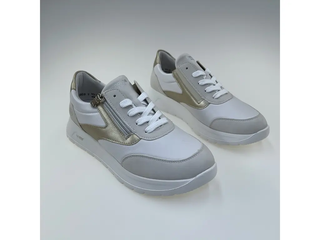 Remonte D2V02-80: Štýlová biela čistota a neprekonateľný komfort v každom kroku Hľadáte kúsok, ktorý rozžiari váš šatník a zároveň dopraje vašim nohám pocit absolútnej slobody? Dámske kožené poltopánky od prémiovej značky Remonte (model D2V02-80) v snehobielej farbe sú dokonalou voľbou pre modernú ženu. Tento model spája športovú sviežosť so špičkovými technológiami pohodlia, ktoré sú pre radu Remonte (člena skupiny Rieker) typické. Doprajte si kvalitu, ktorá nielen skvele vyzerá, ale vďaka ktorej zabudnete na únavu nôh aj po celom dni v meste. Prečo si vybrať práve model Remonte D2V02-80? Prémiová biela koža: Zvršok z výberovej prírodnej kože je mimoriadne mäkký a priedušný. Biela farba s jemnými štýlovými detailmi dodáva obuvi svieži, letno-jarný charakter. Stielka RemonteSoft: Unikátna polstrovaná stielka s pamäťovým efektom sa okamžite prispôsobí anatómii vášho chodidla. Efektívne tlmí nárazy a poskytuje úľavu kĺbom a chrbtici. Technológia Lite 'n Soft: Tento model patrí do odľahčenej línie. Spojenie ultraľahkej, flexibilnej podrážky a mäkkých vnútorných materiálov zaručuje, že topánky na nohách takmer neucítite. Vyberateľná vložka: Stielku je možné jednoducho vybrať, čo ocenia dámy s vlastnými ortopedickými vložkami alebo tie, ktoré si potrpia na jednoduchú údržbu a vysokú hygienu obuvi. Funkčné detaily: Model často disponuje kombináciou šnurovania pre presné nastavenie šírky a bočného zipsu pre bleskové obúvanie bez zbytočného viazania.