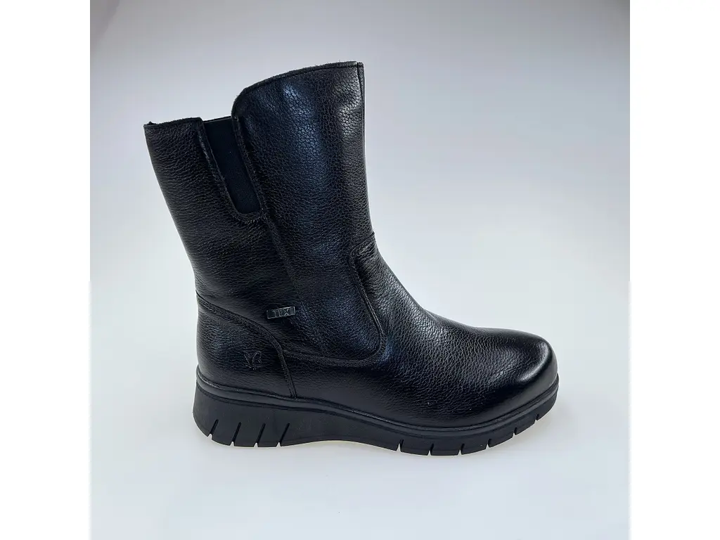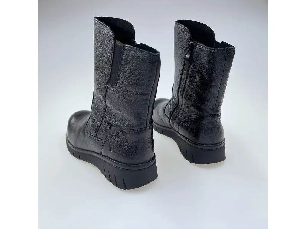 Dámske pohodlné širšie kvalitné čierne teplé Texové 3/4 čižmy 9-26458-45