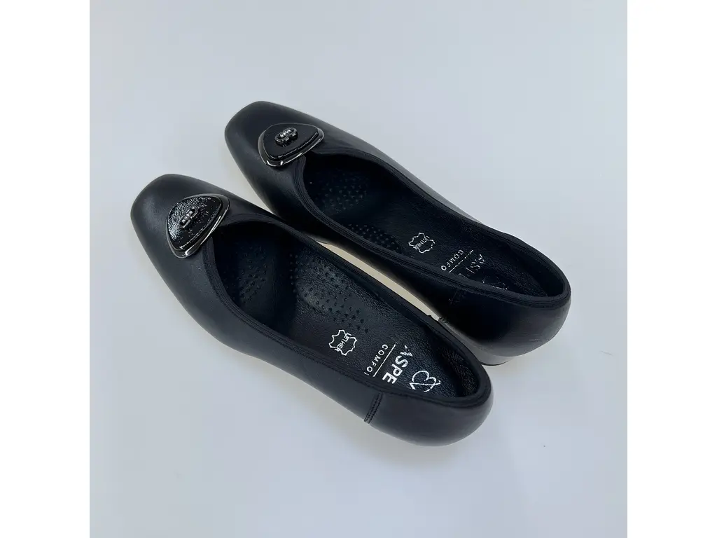 Dámske širšie čierne kožené lodičky ASPKX2852-60