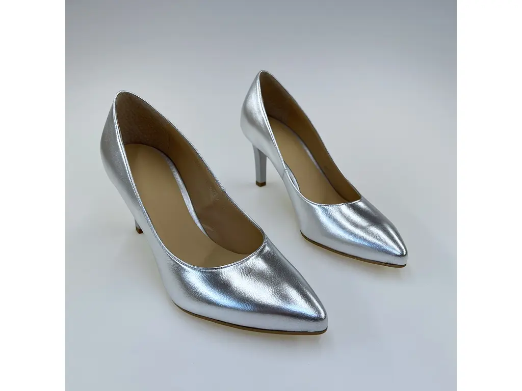 Dámske strieborné mäkučké kožené spoločenské lodičky A4767-AG3