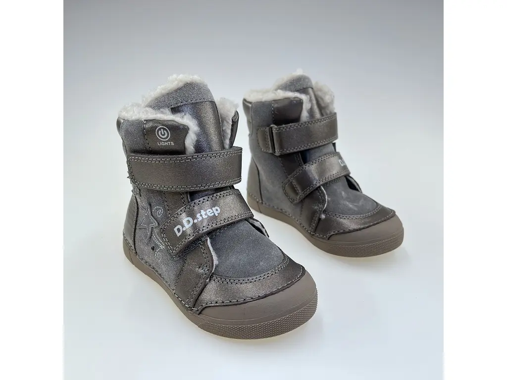 Detské béžové teplé kožené mäkučké LED celé topánky W068-52745AM