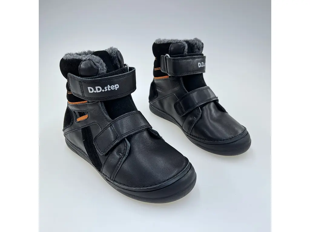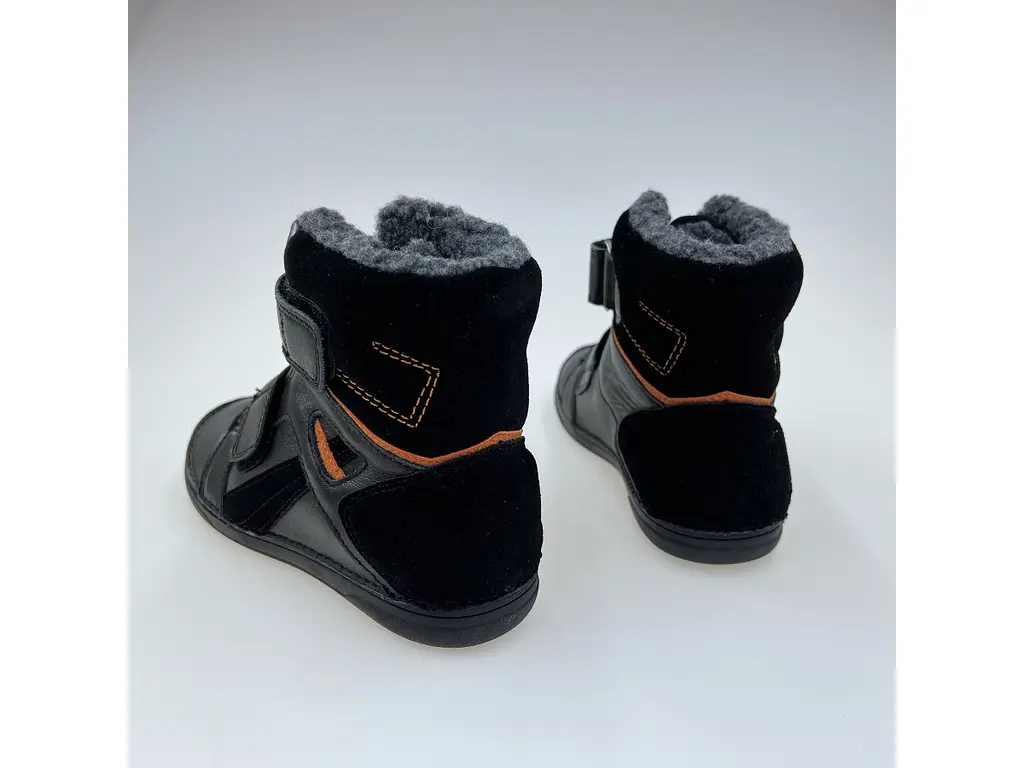 Detské čierne teplé kožené mäkučké celé topánky W078-52451BL