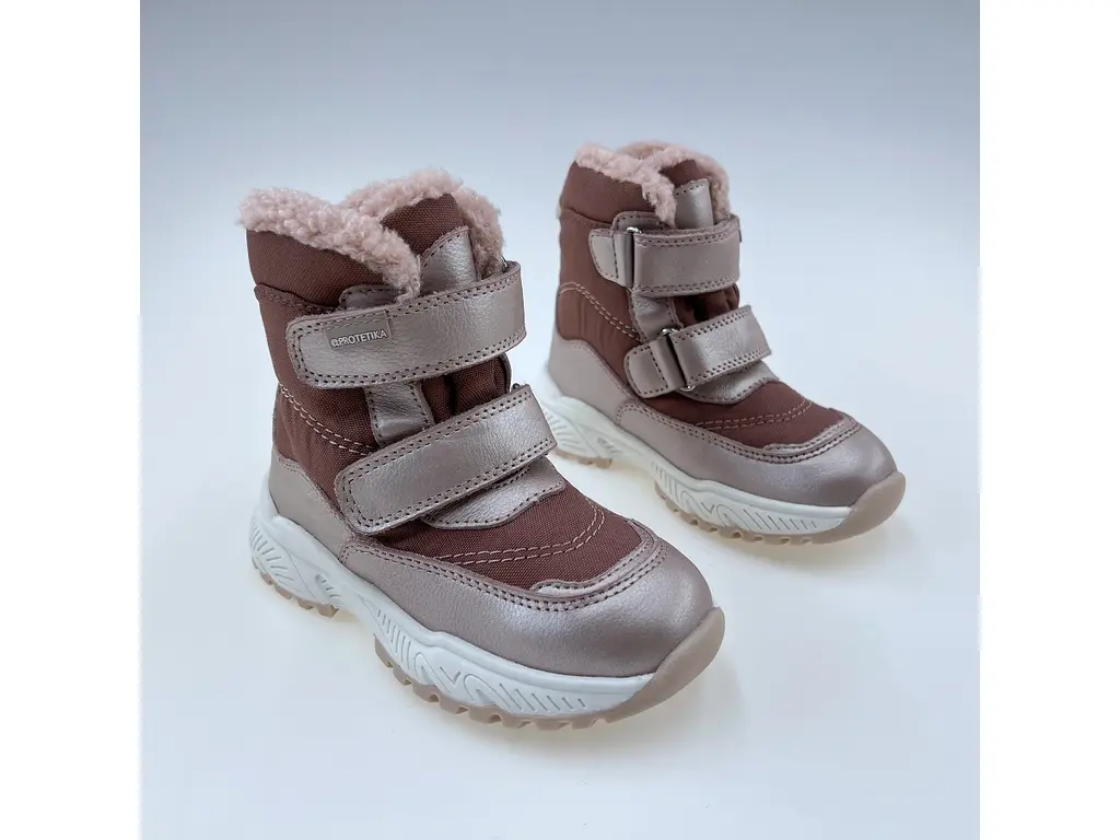 Hľadáte pre svoje dieťa obuv, ktorá kombinuje ortopedicky správny dizajn, maximálne teplo a spoľahlivú ochranu pred vlhkosťou? Tieto detské kožené členkové topánky od značky Protetika sú ideálnym riešením na chladné a mokré dni. Sú vybavené Protetika TEX membránou a vyrobené s dôrazom na kvalitu v EÚ. Prečo sú pre vaše dieťa tou najlepšou voľbou? Protetika TEX membrána: Táto technológia robí topánky vodeodolnými a zároveň priedušnými. Nohy vášho dieťaťa zostanú v suchu a pohodlí aj počas dažďa alebo snehu. Kvalitná pravá koža: Topánky sú vyrobené z odolnej a zároveň mäkučkej pravej kože, ktorá sa dokonale prispôsobí detskej nohe a zaručuje dlhú životnosť. Hrejivé zateplenie: Vnútri topánok je príjemná a teplá podšívka, ktorá spoľahlivo udrží detské nohy v teple aj v chladnom počasí. Zdravý vývoj nohy: Anatomický tvar topánky a flexibilná podrážka podporujú prirodzený vývoj chodidla, spevnenú pätu pre správne držanie nohy. Jednoduché obúvanie: Praktické zapínanie na suchý zips umožňuje deťom ľahké a rýchle obúvanie bez pomoci dospelých.