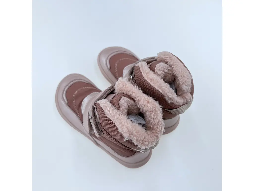Detské kvalitné kožené teplé ružové texové barefoot členkové topánky Nut pink