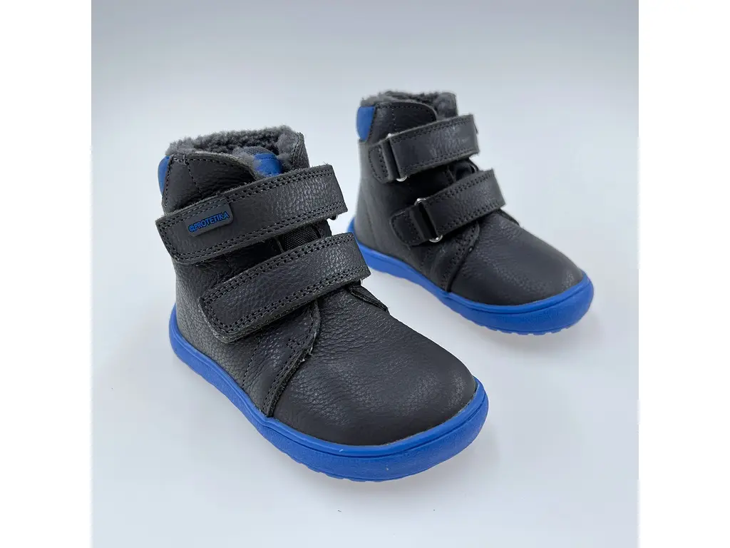 Detské kvalitné kožené teplé sivé texové barefoot členkové topánky Daryk grey
