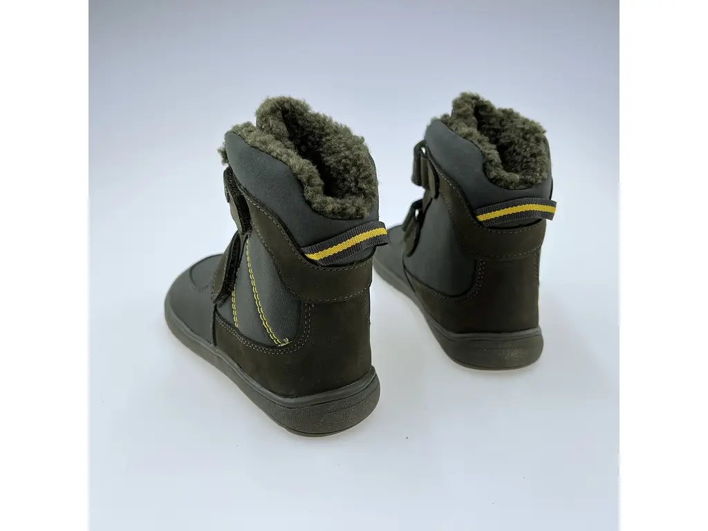 Detské kvalitné kožené teplé zelené texové barefoot členkové topánky Leno khaki