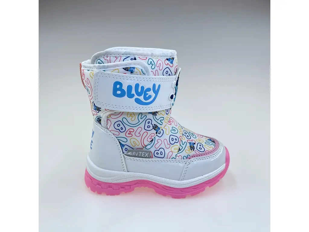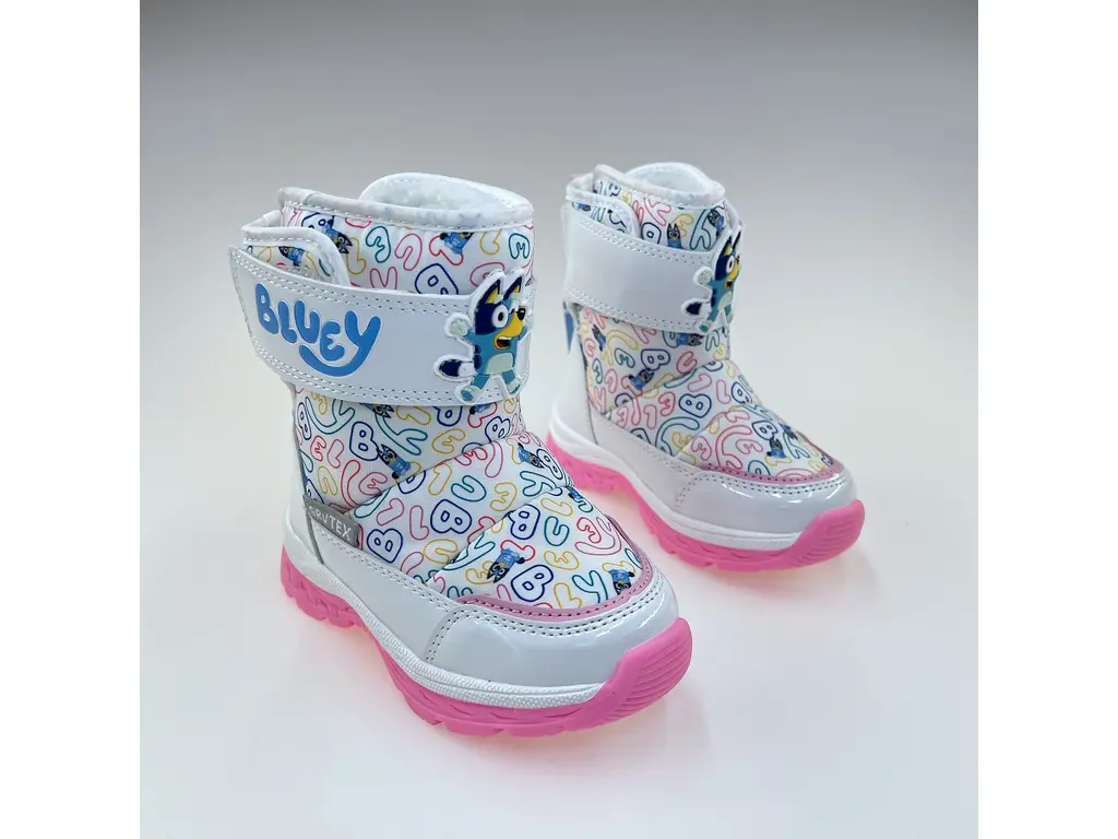 Pripravte svojho malého fanúšika animovaného seriálu na zasnežené dobrodružstvá s týmito detskými snehulami od značky Garvalin! Tieto mäkučké, teplé a kvalitné snehule s veselým motívom Bluey udržia detské nožičky v suchu a teple, zatiaľ čo ich farebný dizajn s obľúbenou postavičkou rozžiari každú zimnú prechádzku. Prečo si ich vaše dieťa zamiluje? Motív Bluey: Veselá aplikácia alebo potlač obľúbenej postavičky Bluey premení každú snehovú kalamitu na skvelú zábavu. Vaše dieťa ich nebude chcieť vyzuť! Maximálne teplo a pohodlie: Snehule sú vybavené hrubým a mäkučkým zateplením, ktoré spoľahlivo udrží teplo aj v najchladnejšom počasí. Sú ľahké a pohodlné, ideálne na celodenné nosenie. Nepremokavá ochrana: Odolný vrchný materiál je navrhnutý tak, aby neprepustil sneh ani vlhkosť, čím zaručuje sucho a ochranu. Jednoduché obúvanie: Praktické zapínanie na suchý zips alebo elastický systém (podľa modelu) umožňuje deťom rýchle a jednoduché obúvanie bez pomoci dospelých. Bezpečný krok: Pevná a protišmyková podrážka poskytuje vynikajúcu trakciu na snehu a ľade, čím zvyšuje bezpečnosť pri hre.