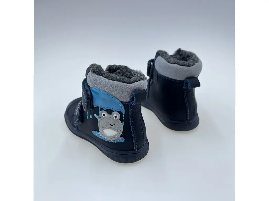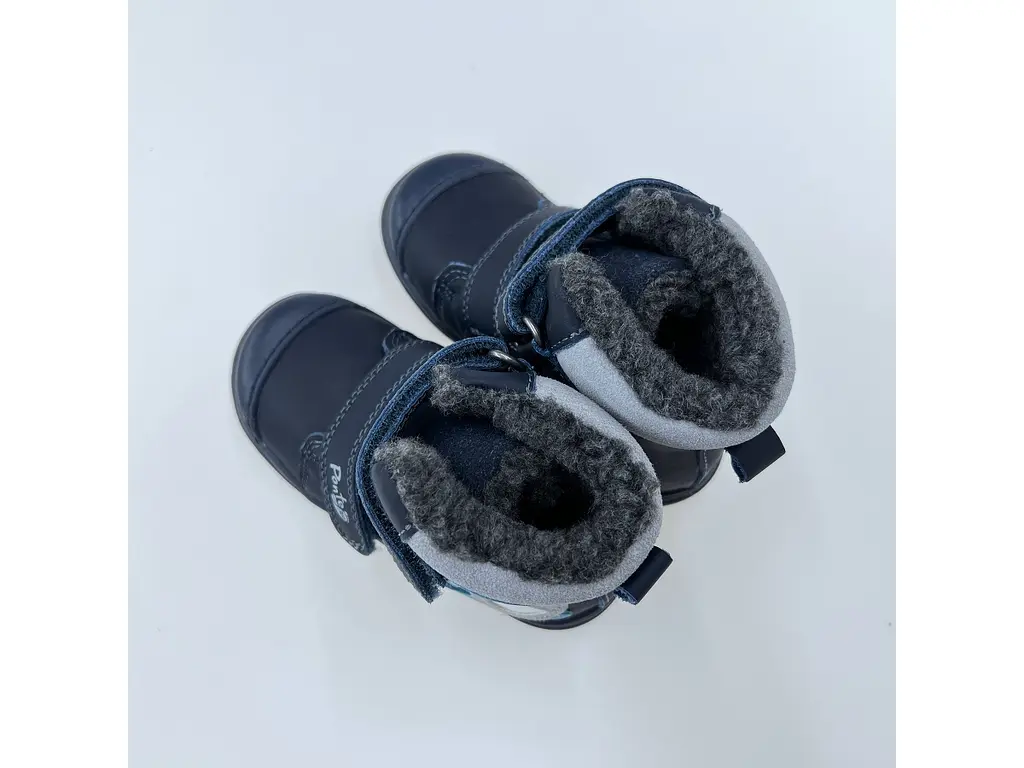 Detské modré teplé kožené pohodlné celé topánky DA07-5-2349