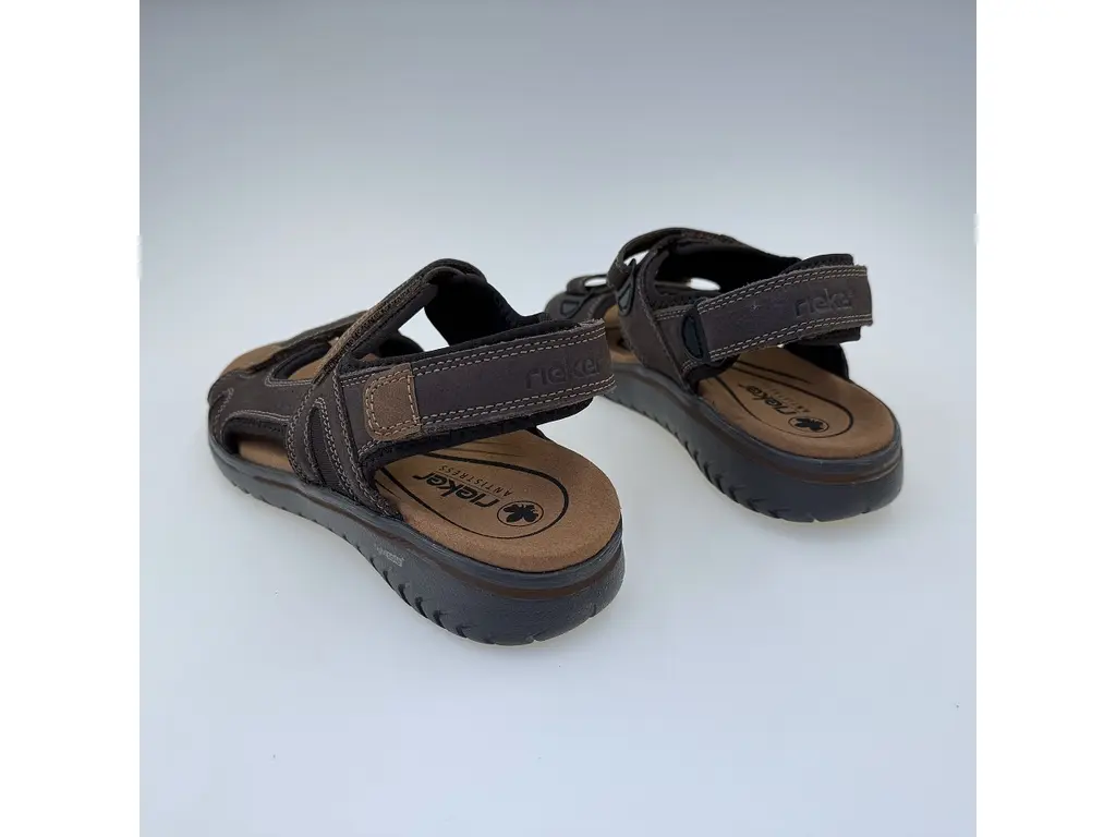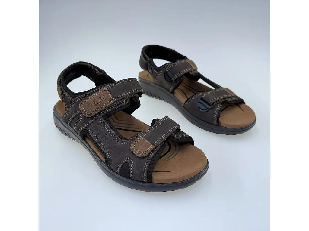 Doprajte svojim nohám slobodu aj počas tých najteplejších dní. Pánske kožené sandále Rieker (vzor 26450-26) v elegantnej hnedej farbe sú ideálnou voľbou pre mužov, ktorí hľadajú dokonalý balans medzi pevnou obuvou a letnou priedušnosťou. Tento model je navrhnutý tak, aby vám poskytol oporu v meste aj na ľahkej turistike, pričom vďaka unikátnym technológiám takmer zabudnete, že ich máte na nohách. Prečo staviť na model Rieker 26450-26? Technológia Rieker Antistress: Špeciálna konštrukcia podrážky zaručuje, že obuv je ľahká, flexibilná a tlmí nárazy pri každom došľape. Šetrí tak vašu chrbticu a kĺby aj pri celodennom nosení. Prémiová prírodná koža: Zvršok z kvalitnej usne je mimoriadne mäkký a odolný. Koža sa rýchlo prispôsobí tvaru vášho chodidla a vekom získava na komforte. Vynikajúca vzdušnosť: Uzavretejší strih s výrazným dierovaním (perforáciou) chráni prsty a pätu, no zároveň umožňuje neustále prúdenie vzduchu, čím predchádza poteniu nôh. Mäkčená stielka: Vnútorná stielka je potiahnutá jemným materiálom, ktorý je príjemný na dotyk aj pri nosení na bosú nohu a poskytuje extra vrstvu tlmenia. Jednoduché a pevné zapínanie: Praktický suchý zips umožňuje rýchle obúvanie a presné nastavenie sandále podľa výšky vášho priehlavku. Všestranný dizajn: Hnedá farba a športovo-elegantný strih robia z tohto modelu univerzálneho spoločníka k džínsom, šortkám aj plátenným nohaviciam.