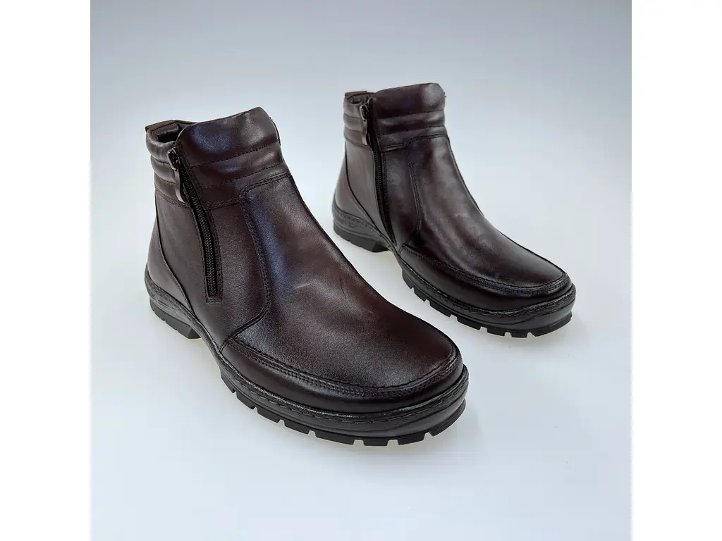 Hľadáte obuv, ktorá dokonale kombinuje robustnú ochranu, prvotriednu kožu a spoľahlivé teplo na zimné mesiace? Tieto pánske kožené členkové topánky od značky EVA sú ideálnym riešením. Sú navrhnuté tak, aby boli mimoriadne mäkké, hrubo zateplené a vyrobené s dôrazom na kvalitu v Európskej únii. Prečo sú pre vás tie pravé? Kvalitná pravá koža: Topánky sú vyrobené z odolnej a zároveň mäkkej kože, ktorá dodáva obuvi dlhú životnosť, zaručuje štýlový vzhľad a dokonale sa prispôsobí tvaru vašej nohy. Hrubé zimné zateplenie: Vnútri topánok nájdete výrazné a hrejivé zateplenie (napr. kožušina alebo hustá podšívka), ktoré spoľahlivo udrží vaše nohy v teple a pohodlí aj v silných mrazoch. Maximálny komfort: Napriek robustnosti sú topánky prekvapivo mäkučké a pohodlné, vďaka čomu sú ideálne na celodenné nosenie počas chladnej zimy. Kvalita EÚ výroby: Precízne spracovanie v Európskej únii zaručuje vysokú kvalitu, odolnosť a súlad s európskymi štandardmi. Robustný a praktický dizajn: Odolná podrážka a kvalitné materiály sú navrhnuté pre stabilitu a spoľahlivosť v náročných zimných podmienkach.