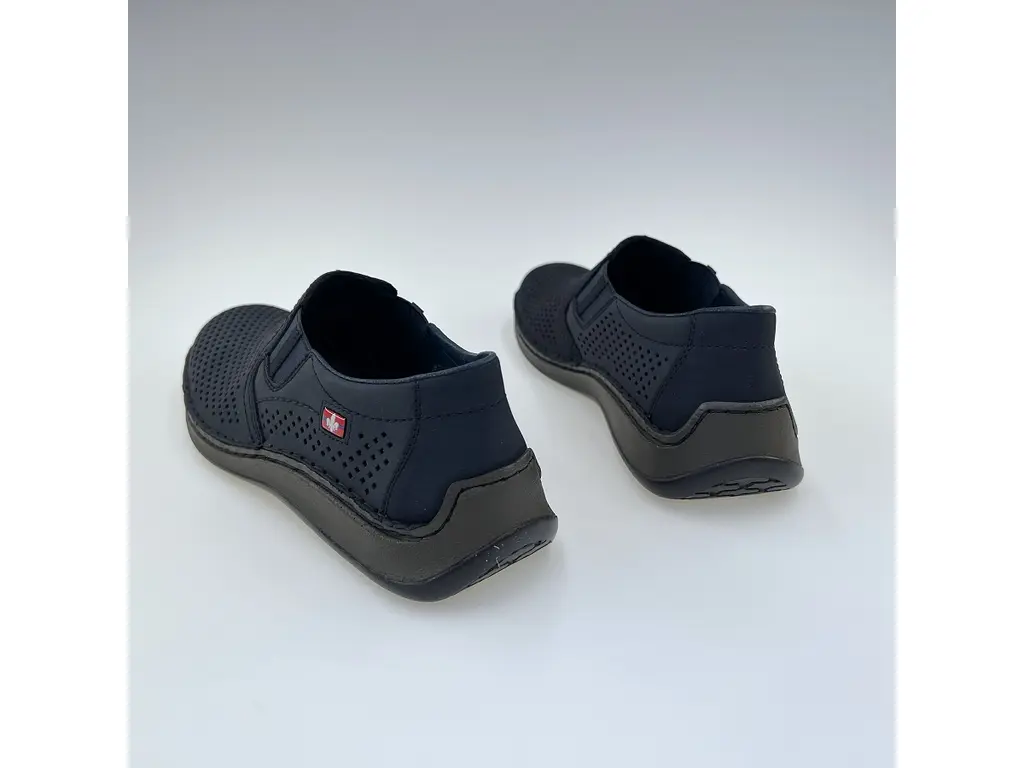 Hľadáte pánsku obuv, ktorá vás nebude nikde tlačiť ani po celom dni na nohách? Pánske mokasíny od prestížneho výrobcu Rieker (vzor 05297-14) sú navrhnuté pre mužov, ktorí vyžadujú nadštandardné pohodlie. Vďaka svojmu širšiemu strihu (Extra Wide) poskytujú dostatok priestoru aj pre chodidlá, ktoré potrebujú viac miesta, a technológia Antistress sa postará o to, aby bol každý váš krok príjemne mäkký a ľahký. Tento model v štýlovej tmavomodrej farbe je ideálnou voľbou pre všetkých, ktorí kombinujú eleganciu s neformálnym životným štýlom. Prečo si zvoliť mokasíny Rieker 05297-14? Širší strih (Extra šírka): Tento model je špeciálne konštruovaný pre mužov so širším chodidlom alebo vyšším priehlavkom. Poskytuje potrebný komfort bez nepríjemného pocitu zovretia. Technológia Antistress: Špeciálna podošva Rieker je ultraľahká, ohybná a efektívne tlmí otrasy pri chôdzi. Chráni tým vašu chrbticu a kĺby pred zbytočnou záťažou. Maximálna mäkkosť: Vnútorná stielka a zvršok sú z mäkučkých materiálov, ktoré sa prispôsobia tvaru nohy. Ideálne pre celodenné nosenie v kancelárii aj vo voľnom čase. Jednoduché nazúvanie: Mokasíny sú navrhnuté ako „slip-on“ model – stačí vkĺznuť a môžete vyraziť. Pružné vsadky na bokoch zabezpečia, že topánka na nohe vždy perfektne sedí. Priedušnosť: Kvalitný zvršok umožňuje nohám dýchať, čo je kľúčové pre sviežosť aj počas teplejších letných dní.